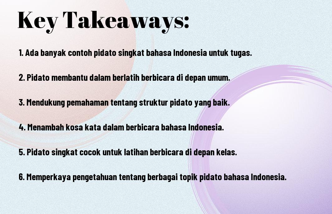 Dari contoh-contoh pidato bahasa Indonesia singkat yang telah dibahas di atas, dapat disimpulkan bahwa kemampuan berpidato dalam bahasa Indonesia merupakan keterampilan penting yang harus dikuasai. Pidato merupakan sarana yang efektif untuk menyampaikan gagasan, ide, dan pesan kepada orang banyak. Dengan latihan terus-menerus dan pemahaman yang baik tentang struktur pidato, setiap individu dapat menjadi seorang pembicara yang handal dalam berbahasa Indonesia.