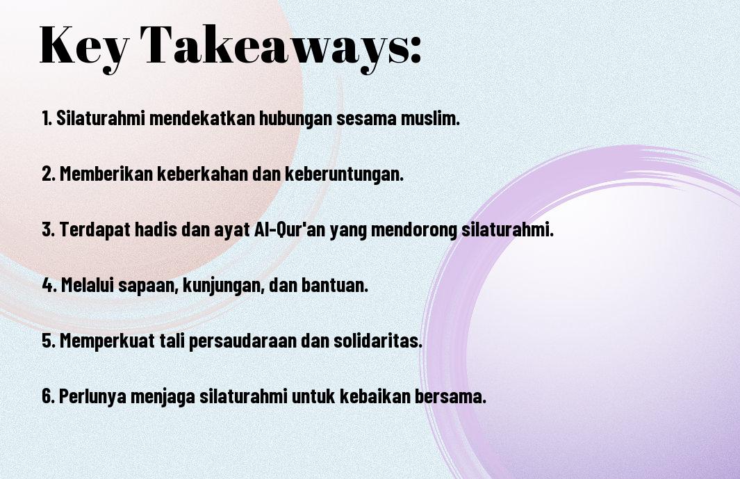 Dengan demikian, silaturahmi tidak hanya penting untuk memperkuat hubungan sosial, tetapi juga memiliki dampak positif dalam meningkatkan kesejahteraan emosional seseorang. Merawat silaturahmi dengan baik adalah investasi untuk kebahagiaan dan kesejahteraan jangka panjang.